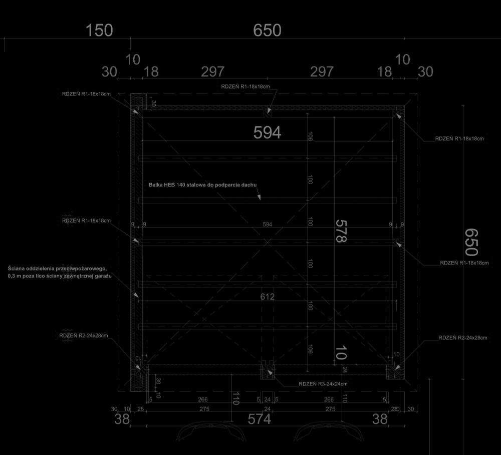 3. Witam - wymiary 6.5m na 6.5m z ocieplenem. - wysokość konstrukcji 3m. - bramy garażowe 2125mm x 2750mm. - dach namiotowy,nachylenie 7 stopni + dachówka. - beka HEB 140 / 14cm x 612cm . -płyta fundamentowa 15cm -bloczki fundamentowe 18cm -beton komórkowy 18cm klasa 600 Beki maja zadanie usztywnienie konstrukcji, podparcie dla dachu przy 7 stopni , mocowanie płyt osób jako sufit. Dachówki ceramiczne 50 kg na 1 mkw, powierzchnia dachu 51m2. = 2550kg Sufit 35m2 z OSB lub MFP Płyta osb 2500x1250x22mm waga 42kg x 35m2 = 1470kg Płyta mfp 2500x1250x22mm waga 48kg x 35m2 = 1680kg Pytania, - czy beka HEB 140 wystarczy na dach z w/w materiałów plus obciążenie śniegiem ,strefa klimatyczna III. - ile sztuk będzie potrzebne HEB 140 - dwuteowniki HEB 140 33.7kg/m , 6,12m = 206.244kg - jakim tańszym materiałem zastąpić a zarazem spełniającym swoje zadanie ,może HEA 140 - ile sztuk będzie potrzebne? - dwuteowniki HEA 140 24.7kg/m , 6,12m = 151.164kg - który materiał będzie bardziej odpowiedni OSB czy MFP Mam problem czy właściwie określiłem materiały, czy założenie belki H jest właściwe, ktoś ma chęć i może pomoc! Załączam rysunki