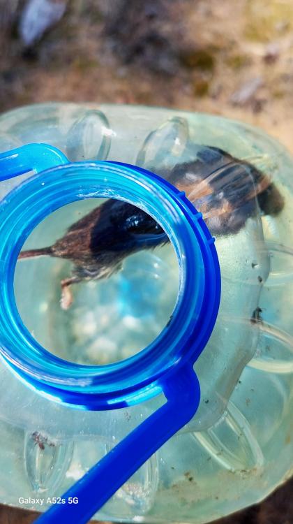 8. Wracajac do niechcianych roslin. Strasznie mi sie rozpanoszyla na dzialce kostrzewa sina, prawie calkiem wyparla moja sliczna trawe i mchy. Jej zywotnosc jest nieprawdopodobna. Z jednej strony domku jest kupa piachu, ktory zostal po wykopie pod fundamenty. Wiatr zawial na jej czubek mala kostrzewke, i ona sie zakorzenila i rosnie. W tym piachu, jej korzenie nie maja zadnej szansy dotarcia do gruntu, ale ma sie dobrze i rosnie. Teraz juz wiem na pewno, ze mam nornice. Zeby nie podlewac roslin zimna, chlorowana woda, napelniam 6-ciolitrowe butle i woda nabiera mocy urzedowej tudziez temperatury otoczenia. Kilka dni temu znalazlam w jednej butli nornice - a moze to zwykla, polna mysz ? Widok ten zasmucil mnie bardzo. Chcialabym, oczywiscie, zeby nornic nie bylo, ale wolalabym, zeby po prostu sie wyniosly, a nie w taki sposob... I kolejna smierc na dzialce - sliczna sojka. Nie wiem dlaczego, zadnej rany nie bylo widac Reszta zwierzatek chyba ma sie dobrze. Niedawno widzialam jeza i kilka nietoperzy. Tych malych nie biore pod uwage, i nie licze (np. mrowek )