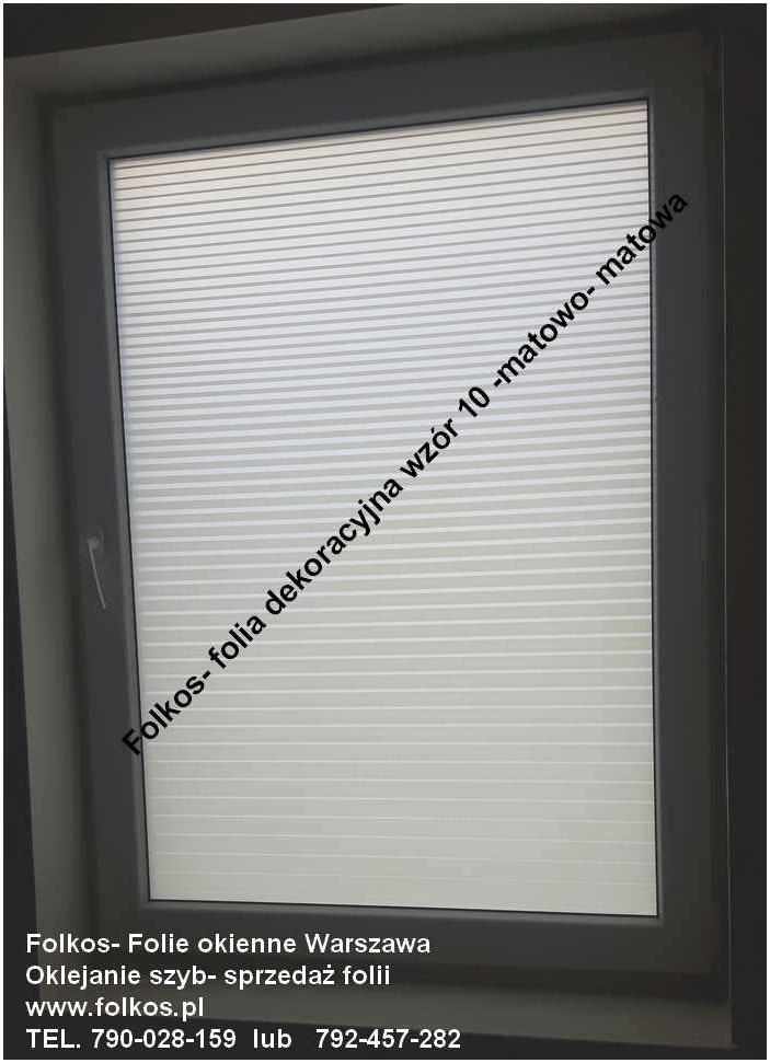 3. Telefon: 790-028-159 lub 792-457-282 E-mail: folkos@wp.pl PHU FOLKOS - Profesjonalne Folie Okienne Warszawa cała Polska Prowadzimy sprzedaż,montaż oraz demontaż folii okiennych. Folię można zakupić osobiście lub wyślemy ją pod wskazany adres. FOLIA LUSTRO WENECKIE GRAFIT 90%- folia pozwalająca widzieć nie będąc widzianym Folia ta występuje w szerokości 152cm - długość praktycznie dowolna -Folia na okna wewnątrz budynków (np . z pomieszczenia do pomieszczenia) FOLIA Lustro WENECKIE 99% - folia pozwalająca widziec nie będąc widzianym .Folia wystepuje w szerokości rolki 152cm -długość dowolna -Folia na okna wewnątrz budynku ( na okna z pomieszczenia do pomieszczenia korytarz jak również z pomieszczenia na zewnątrz ) - bardzo ciemna FOLIA LUSTRO WENECKIE -Lustro 285, Lustro 270, Lustro 260-na okna wychodzące na zewnątrz - dostepne szerokości 122cm i 152cm folia ciemna, średnia , jasna . Folie zapobiegają nadmiernemu nagrzewaniu pomieszczeń -odbijają ciepło promieniowanie podczerwone IR oraz zatrzymują 99 % promieniowania UV -co zapobiega szybkiemu starzeniu ,płowieniu, traceniu kolorów... się podłóg, pomieszczeń i znajdujących sie w nich przedmiotów i materiałów. http://www.folkos.pl Chcesz uzyskać wycenę folii wraz z oklejeniem podaj : * miejsce montażu ( miejscowość , ulicę ) * zdjęcie powierzchni do oklejenia * wymiar i ilość okien * rodzaj folii jaki ma być zastosowany lub co mamy uzyskać przez jej zastosowanie Na zdjęciach przedstawiamy przykładowe realizacje wykonane przez naszą firmę.