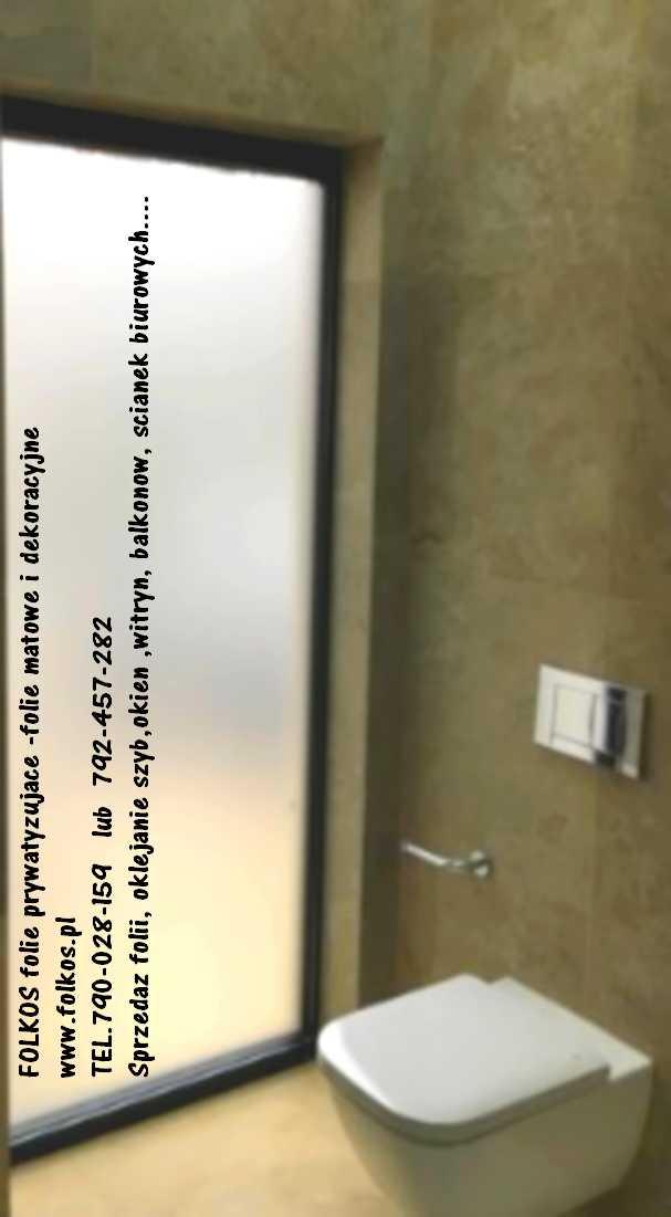 1. Oklejanie okien łazienkowych- folie prywatyzujące na okna, drzwi, witryny, ścianki działowe... Folie matowe i dekoracyjne Folkos -Oklejanie szyb sprzedaż folii okiennych Warszawa i okolice Folie tego typu znajdują zastosowanie tam, gdzie chcemy ograniczyć wgląd w obu kierunkach i utrzymać wysoką przepuszczalność światła słonecznego. Folie matowe zamieniają powierzchnie szklane w półprzeźroczyste lub nieprzeźroczyste, zapewniają prywatność, dyskrecję, komfort pracy oraz stanowią ciekawy element dekoracyjny. Zalety folii matowych Folkos na oknach łazienkowych: * zapewnia 100% prywatność * nie zaciemnia pomieszczenia * łatwa w utrzymaniu czystosci * odporna na wilgoć i parę * wygląda estetycznie * trwała Folie matowe zewnetrzne- na szyby balkonowe- odporne na zmienne warunki atmosferyczne http://www.folkos.pl Prowadzimy sprzedaż, montaż oraz demontaż folii okiennych. Folię można zakupic osobiscie lub wyslemy ja pod wskazany adres. Na zdjęciach przedstawiamy przykładowe realizacje wykonane przez naszą firmę TEL. 792 457 282 lub 790 028 159 folkos@wp.pl lub folkos@onet.eu Folkos- Profesjonalne Folie Okienne