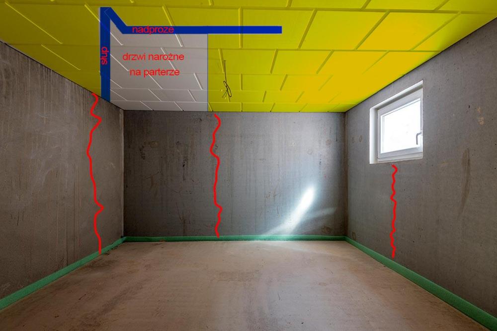 Chciałbym się zapytać o skuteczność stosowania kotew spiralnych przy zszywaniu rys w ścianach piwnicy z bloczka betonowego. Dom nowobudowany, stoi ok 3 lat, podłoże gliniaste z podsypką piaskową. Mam taką sytuację że rysy pojawiły się pod dwoma oknami w piwnicy (mniej więcej na środku) idące od ławy po samą wnękę okna. Oraz występują też rysy w miejscach gdzie na parterze są okna narożne, jakby od nacisków punktowych, może też od osiadania albo jedno i drugie. Pomijam fakt że mam też rysy na łączeniach ścian nośnych zewnętrzych z wewnętrznymi ale tu nie będę miał dostępu żeby wkleić kotwy spiralne. Czy te kotwy sprawdzą się w przypadku gdy rysy powstały na wskutek dużych nacisków punktowych? Czy podcinanie fug na ok 4-6cm będzie bezpieczne w takim wypadku? Poniżej rysunek poglądowy jak to u mnie wygląda. Na początku miałem plan żeby pod oknami wyciąć jedną warstwę bloczka i wkleić pręty zbrojone po każdej ze stron okna i zalać betonem (takie "podproże" jakby). Ale z tymi kotwami spiralnymi będzie chyba prościej. Tylko nie wiem czy te kotwy trzeba wklejać od wewnątrz czy od zewnątrz czy z obu stron?