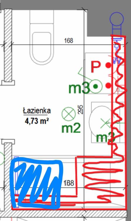 Czytając internet w wielu miejscach pojawia się diagnoza dotycząca odwrotnie podłączonego zasilania i powrotu, ale z tego co sprawdziłem, to po odkręceniu grzejnika najpierw nagrzewa się prawa rurka, co jest zgodne z rzutem technicznym:
