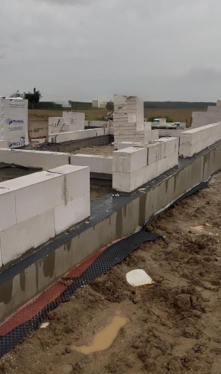 1. Witam, Jestem na etapie zamawiania okien do domu i z tego powodu urodziło mi się kilka pytań. Na fundamencie z bloczków betonowych został wylany wieniec. Z zewnątrz cały fundament wraz z wieńcem został zaizolowany oraz ocieplony 10cm warstwą styropianu przeznaczonego na fundament. Wnętrze zostało już zasypane piaskiem i zagęszczone. W chwili obecnej sytuacja na posadzce wygląda tak, że wylany zostanie chudziak (10cm), 15cm styropianu (ogrzewanie podłogowe) 6cm wylewka i 1.5-2cm na płytkę/panel - co daje nam 33cm. Tyle też właśnie pozostało miejsca między "piaskiem" a górną krawędzią wieńca.Finalnie więc, docelowa posadzka zrówna mi się niejako z górną krawędzią wieńca oraz izolacją poziomą. Czy to jest poprawnie wykonane? W otworach okiennych natomiast wychodzi, że okno balkonowe będzie osadzone bezpośrednio na wieńcu (na widocznej izolacji). Czy to jest okej? Nie będzie się w tych miejscach tworzył koszmarny mostek termiczny? Jeśli przyszłaby podwalina to okno mi się podniesie, co za tym idzie powstanie próg? Nie będzie przemarzać? Inna sprawa, że wieńce na wew. ścianach są na tej samej wysokości, więc wszędzie tam gdzie mam próg, to albo docelowa posadzka (panel) przyjdzie odrazu na wieniec, albo będę musiał go podkuć? Bardzo proszę o Państwa opinie.