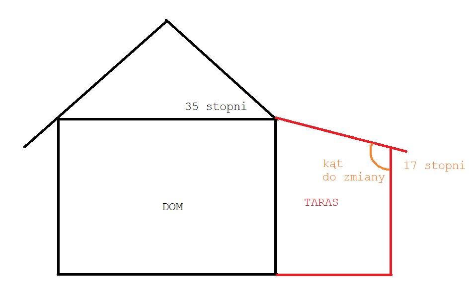 1. Ciężko mi odpowiedzieć, czy to jest część dachu. Dach normalnie ma 35 stopni i następuje przełamanie w kat 17 stopni nad tarasem. Krokiew dachu i krokiew tarasu jest oparta na tej samej murłacie.