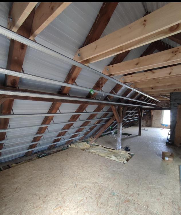 1. Witam. Proszę o pomoc w sprawie mojego dachu. Stary dom kupiony 7 lat temu. Około 2005 roku poprzednik zamontował blachodachówkę. Pod blachę niestety, zamiast membrany dachowej, została założona folia dachowa (FWK). Dach dwu spadowy. W chwili obecnej poddasze jest ocieplone 25cm wełny. Między folią dachową a wełną jest gęste sznurowanie i szczelina 5cm. W kalenicy jest nacięta folia dachowa. Latem planuje zdjęcie starej kalenicy, założenie taśmy kalenicowej z dziurkami i przykręcenie szerszej kalenicy w celu zwiększenia wentylacji. Od strony okapu będą szczeliny nawiewne. W jednej ze ścian szczytowych jest otwór 160mm i kratka wentylacyjna. W drugiej ścianie szczytowej nie mogłem wywiercić otworu bo jest tam przyłącze linią napowietrzną. Wełna jest położona od okapu między krokwiami do 2/3 wysokości dachu i później przechodzi nad jętki. Czy tak ocieplony dach ma szansę na prawidłowe funkcjonowanie? W normalnym świecie byłaby membrana dachowa wypuszczona do rynny, wełna by dolegała do membrany, ewentualne skropliny wpływałyby do rynny. Czy w moim przypadku sprawna wentylacja uchroni wełnę przed wilgocią? Żona uparła się na wełnę i niestety same z tego problemy... Wszystkie prace przeprowadzam sam. Żałuję że nie zrobiliśmy piany. Konstrukcja dachu sucha, szczelna, byłoby bez roboty i pewnie że nic by się nie zadziało. Proszę o cenę sytuacji.